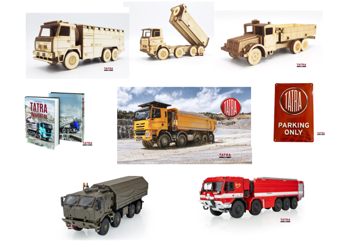 - reklamné predmety zn. TATRA tričká, mikiny, polokošele, ruksaky, knihy, plagáty, magnetky, hodiny, opasky, kľúčenky, hrnčeky, kalendáre...)